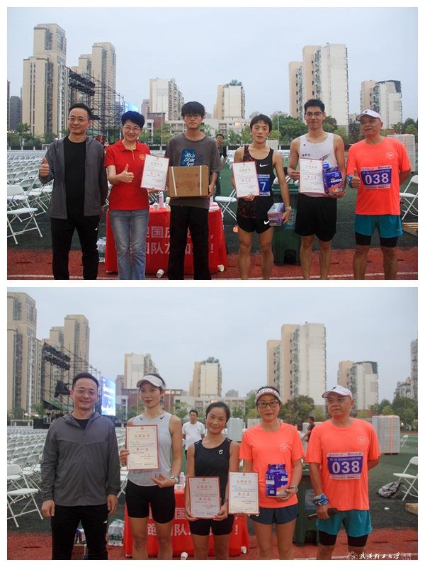 在10公里健康跑活动中,董仕节为比赛鸣枪发令。校友办主任徐燕、轻工大武汉跑团团长谢尚军、96级校友彭亮共同为男子前三名和女子前三名颁奖。